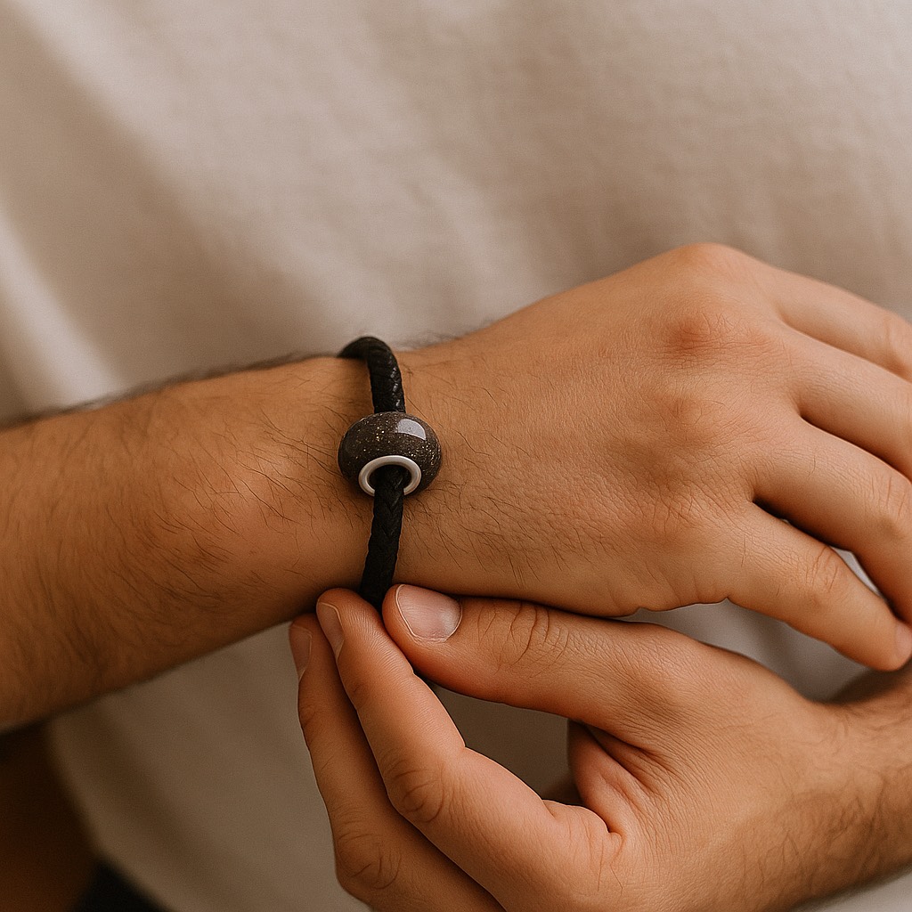 Charm de cenizas de tu ser querido, con ojales en plata de ley 925.