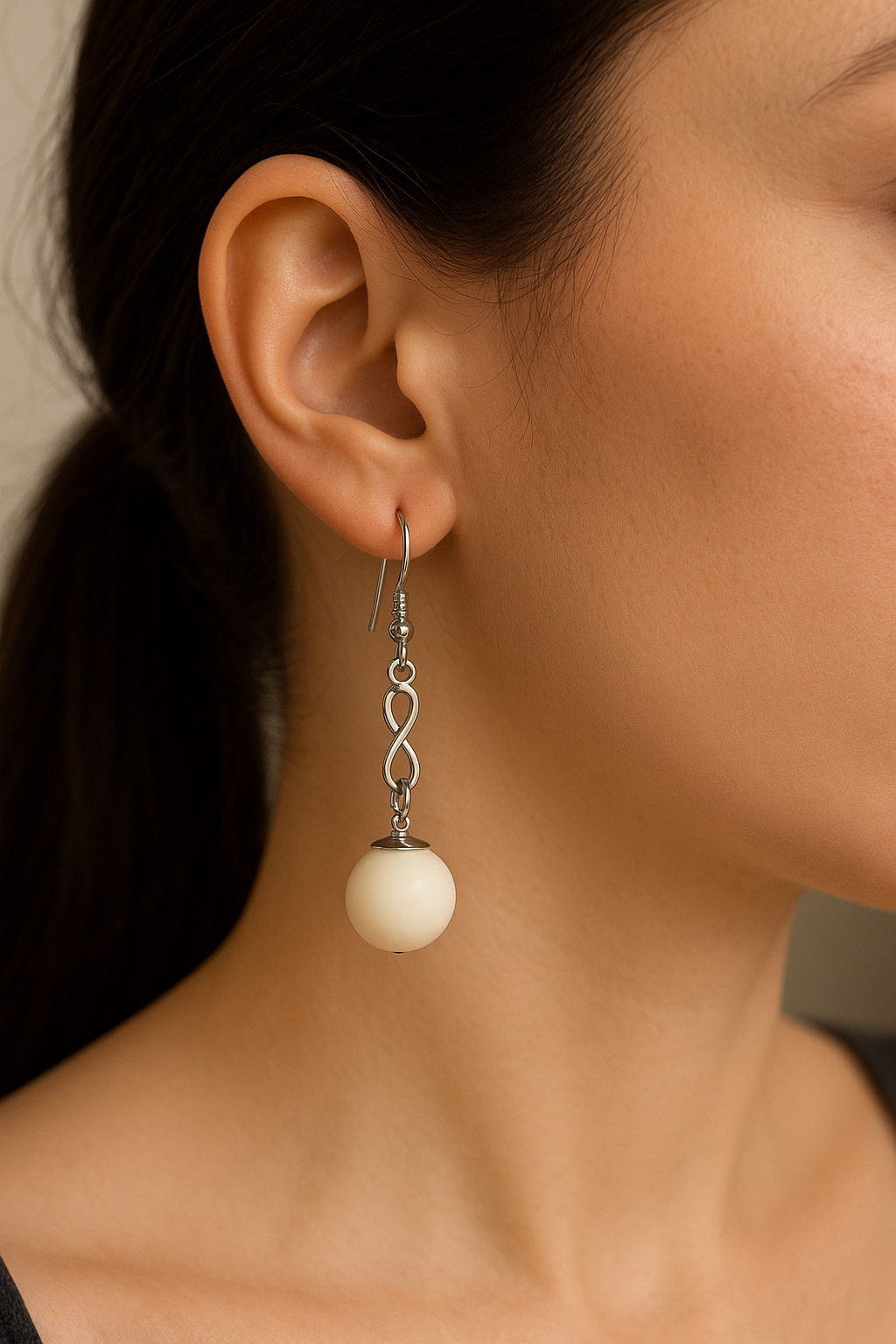 Pendientes en plata de ley 925 de la mejor calidad con el símbolo de infinito y dos bolitas de 11mm.